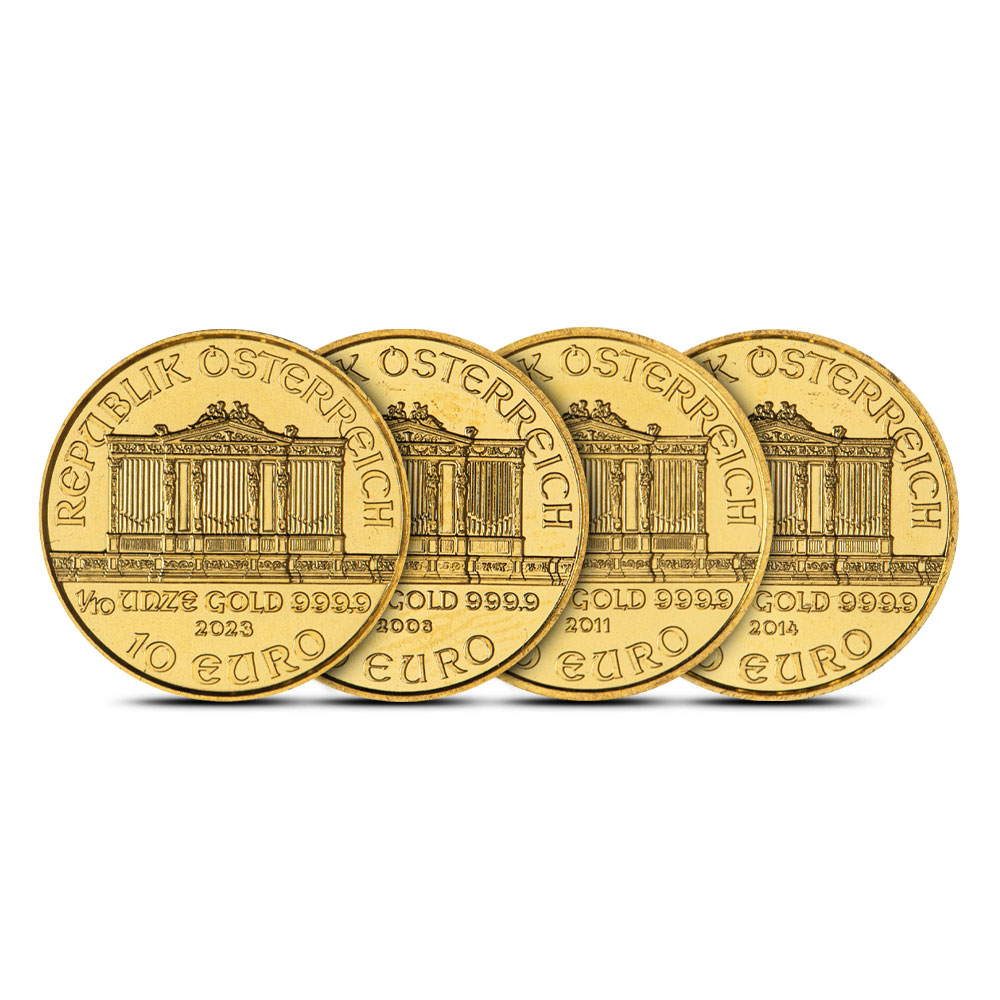 • The 1/10 oz version, introduced in 1991, offers a compact yet exquisite investment piece, crafted in .9999 fine gold and bearing the Euro denomination since Austria adopted the currency in 2002.