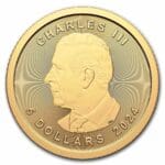 •The obverse of the 2024 coin introduces a left-profile portrait of King Charles III, designed by Susanna Blunt. This is the first-ever portrait of King Charles III in the Canadian Gold Maple Leaf series and follows the tradition of changing the monarch's orientation with the beginning of a new reign.
