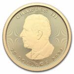 The obverse features the first-ever portrait of King Charles III on the Canadian Gold Maple Leaf. Designed by Susanna Blunt, the king is shown in left-profile relief, which is a traditional design choice for a new monarch. This marks the third portrait of a monarch in Royal Canadian Mint history to be created by a Canadian artist.