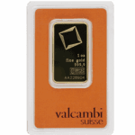 Bar Highlights • Mintage: Ongoing production by Valcambi Suisse • Contains: 1 Troy Ounce of .9999 pure gold • Face Value: None – not legal tender • Packaging: Ships in sealed plastic assay packaging (multiples of 25 in boxes) • Design: Obverse features Valcambi logo, weight, purity, assayer’s mark, and serial number; reverse includes “Valcambi Suisse” engraving • Security: Individual serial number and official assay card • IRA Eligible: Yes