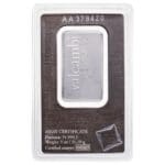 General Overview • The 1 oz Valcambi Platinum Bar is a refined, elegant investment piece from one of Europe’s most respected precious metal refiners. • Valcambi, based in Switzerland since 1961, is renowned for its high-quality products and cutting-edge refining capabilities. • This platinum bar exemplifies minimalist luxury and dependable purity, making it a trusted choice for both new and seasoned investors.