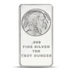 General Overview • The 10 oz SilverTowne Buffalo Silver Bar is a bold tribute to one of America’s most iconic coin designs—the Buffalo Nickel by James Earle Fraser. • Minted in .999 fine silver and produced by SilverTowne Mint, these bars feature both the Native American and bison imagery from the original 1913 nickel. • A favorite among history-loving collectors and bulk investors, this bar provides visual appeal and stackable value at a lower premium.