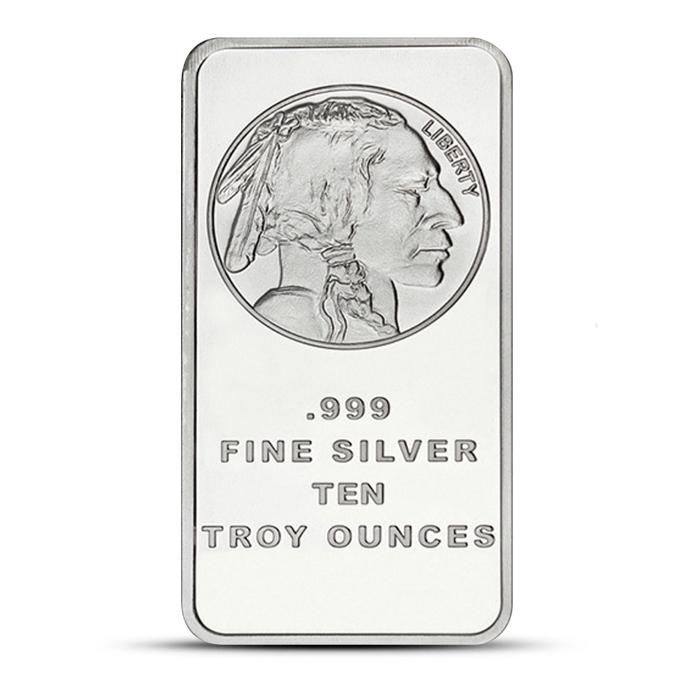 Bar Highlights • Mintage: Ongoing production by SilverTowne Mint • Contains: 10 Troy Ounces of .999 fine silver • Condition: New • Face Value: None – not legal tender • Packaging: Ships in sealed plastic wrap • Design: Obverse features Native American portrait; reverse features Black Diamond bison • Security: Minted finish with precision details • IRA Eligible: Yes
