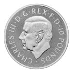 • Displays the left-profile portrait of His Majesty King Charles III, created by Martin Jennings.