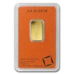 Bar Highlights • Mintage: Ongoing production by Valcambi Suisse • Contains: 5 Grams (0.1607 Troy oz) of .9999 pure gold • Face Value: None – not legal tender • Packaging: Ships in blister-proof plastic with orange assay card • Design: Valcambi logo, metal content, weight, purity, serial number, and assayer’s mark • Security: Individual serial number and assayer’s mark • IRA Eligible: Yes