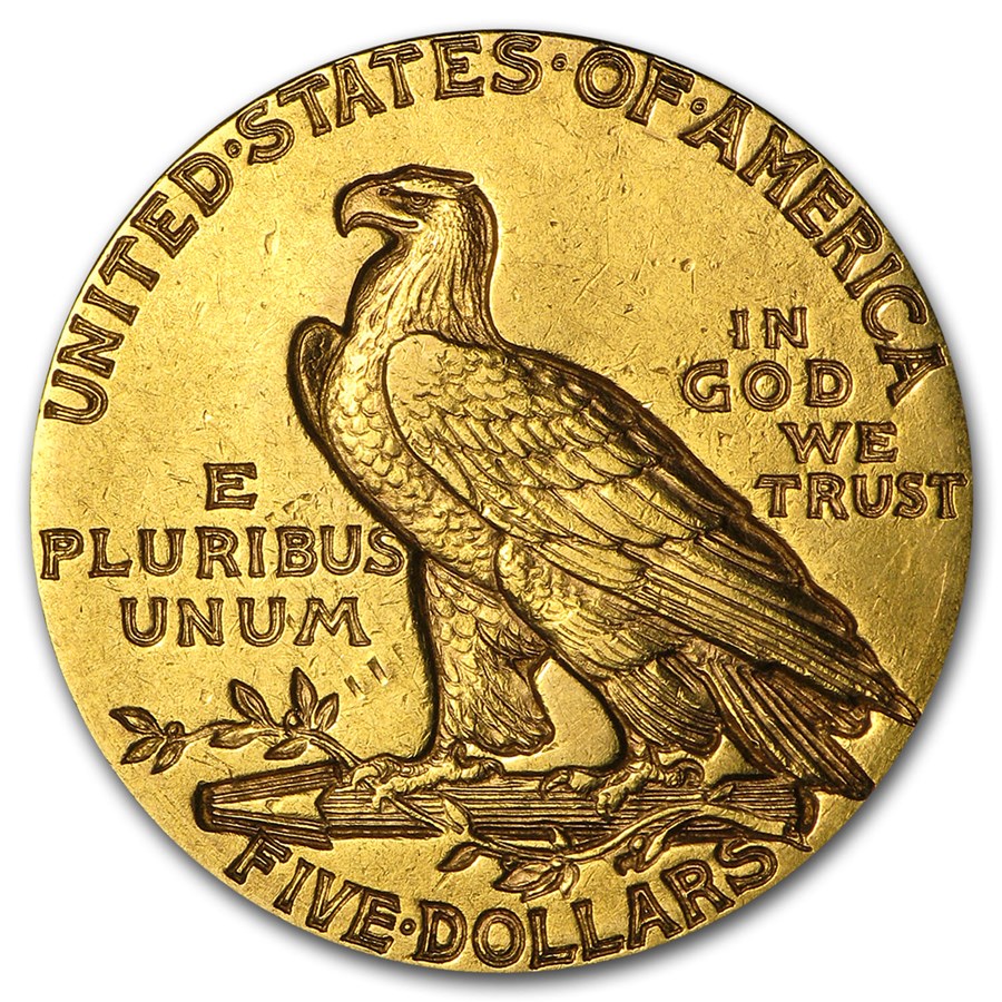 • The $5 Indian Gold Half Eagle, released in 1908, represents the final and most visually distinctive version of the U.S. Half Eagle series.
